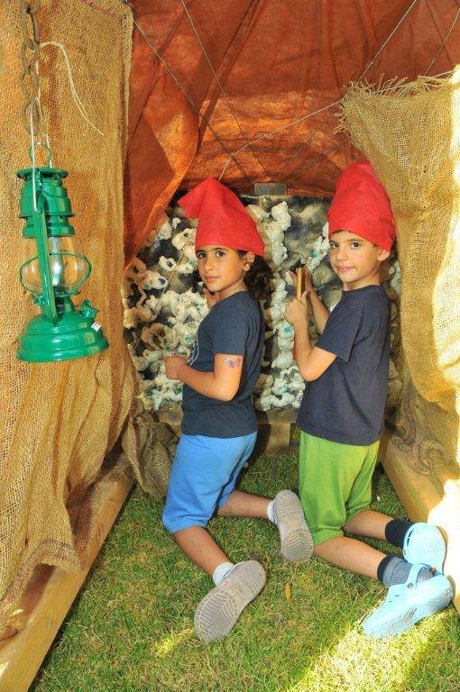 נחצוב במכרה עץ קלאסי יהלומים נפלאים בהדרכת הגמדים כאשר כל ילד חובש מצנפת אדומה